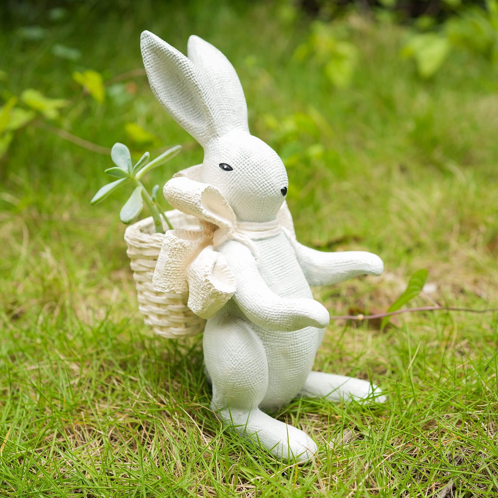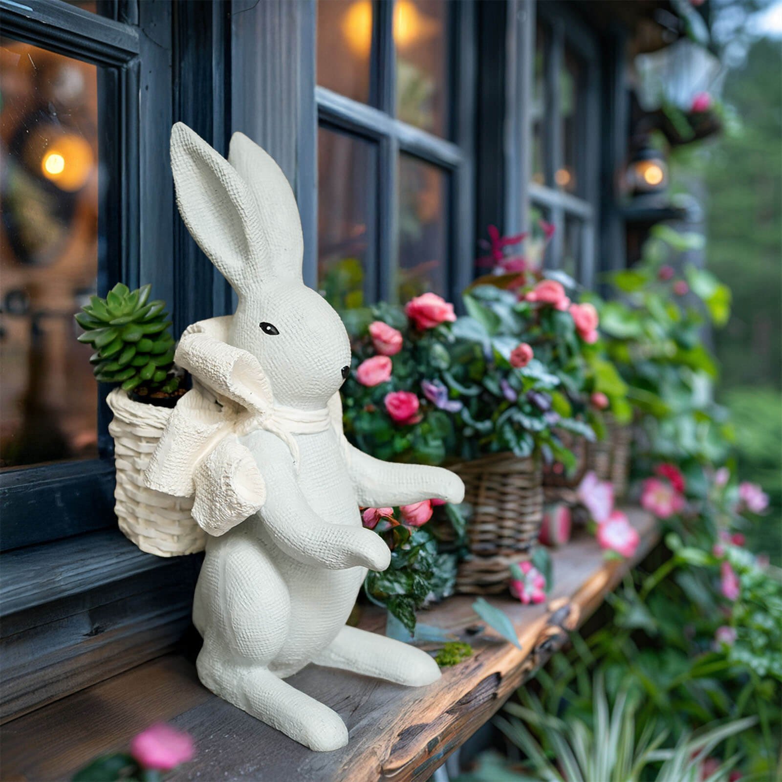 Rabbit Planter for Succulents – Indoor Outdoor Resin Bunny Flower Pot with Hollow Basket, Cute Garden Decoration for Real or Artificial Plants